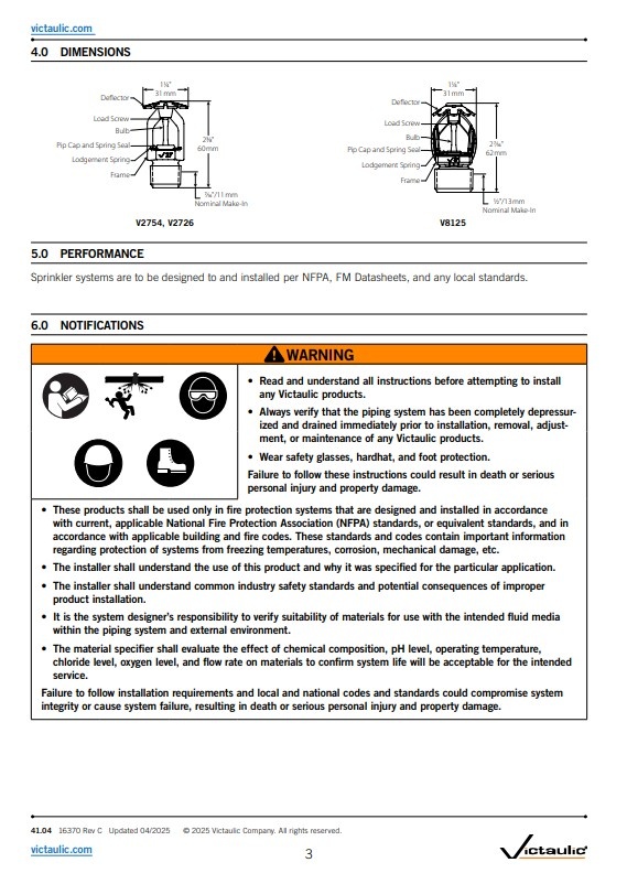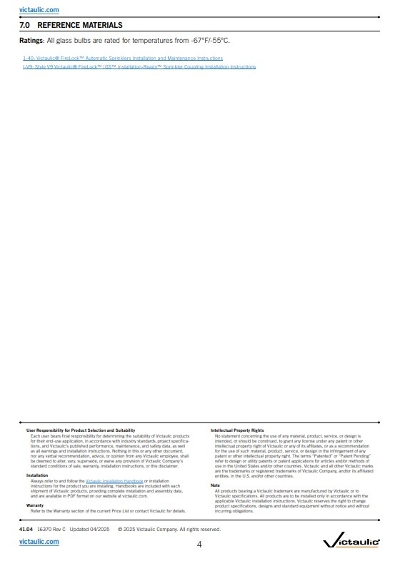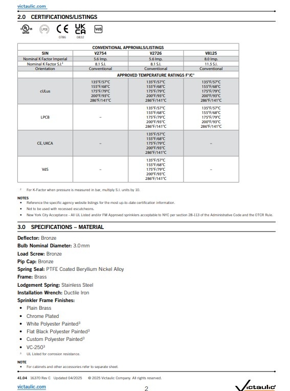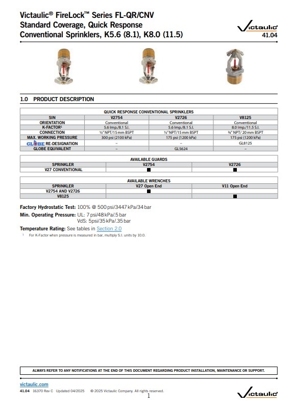 Victaulic FireLock™ Series FL-QR/CNV Conventional Sprinklers