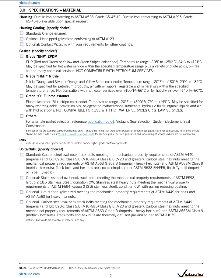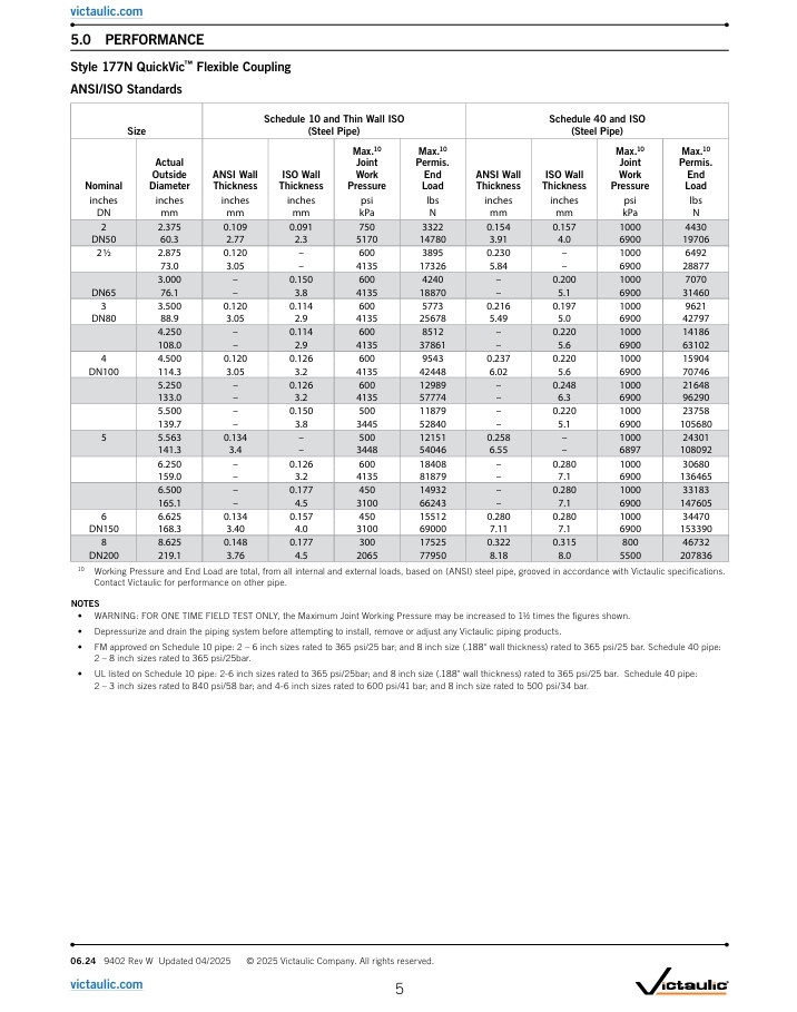 • Applications that require NSF 61-approved products should specify the Victaulic Installation-Ready™ Flexible Coupling Style 877N (publication 06.29).