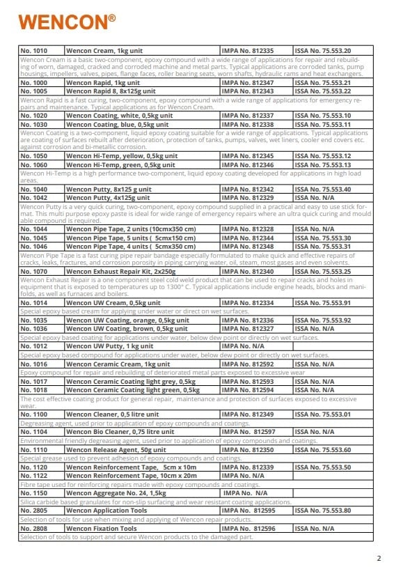 Wencon® Tanker Kit contains: Wencon Putty 4 x 125 g. 1 set Wencon Pipe Tape 4 unit 5 x 350cm. 1 box Wencon UW Cream. Read more