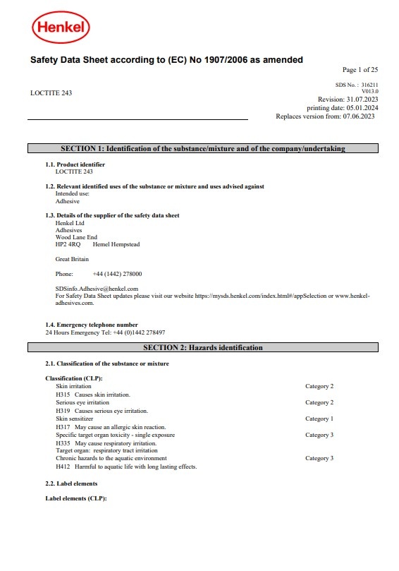LOCTITE® 243 Uitvoering: schroefdraadborging met gemiddelde sterkte voor verbindingen tot M36. Toepassing: Schroefdraadborging Inhoud: (ml)50 Lees meer