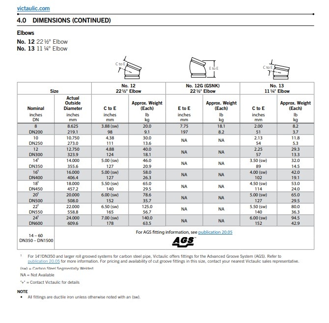 Victaulic bocht 22 1/2° Style 12 Fittingen verkrijgbaar van ¾ – 24″ | DN20 – DN600 Lees meer
