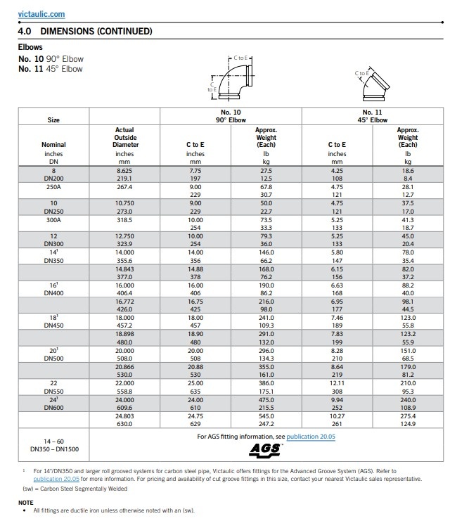 • De drukwaarden voor Victaulic-standaardfittingen komen overeen met de waarden voor Victaulic Style 77-koppelingen (zie publicatie 06.04 voor meer informatie).